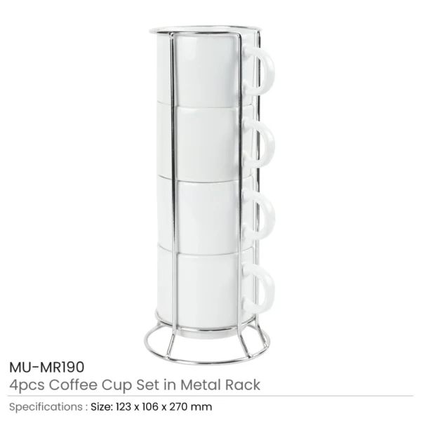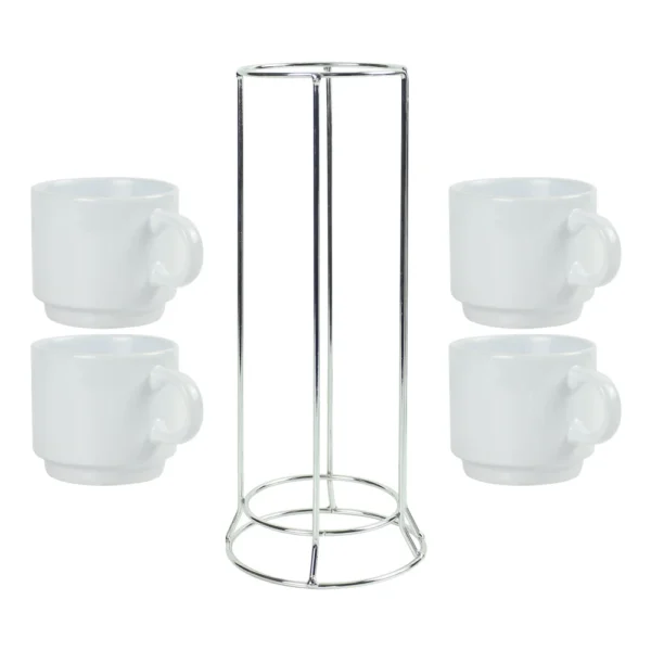 Ceramic Coffee Cups Set 4Pcs in Silver Metal Rack