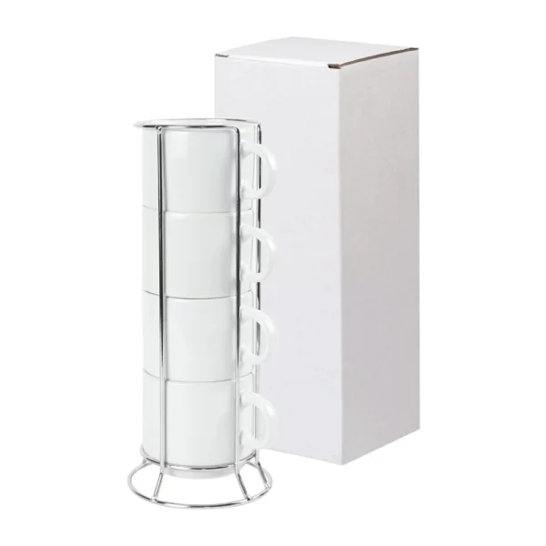 Ceramic Coffee Cups Set 4Pcs in Silver Metal Rack – 10 oz