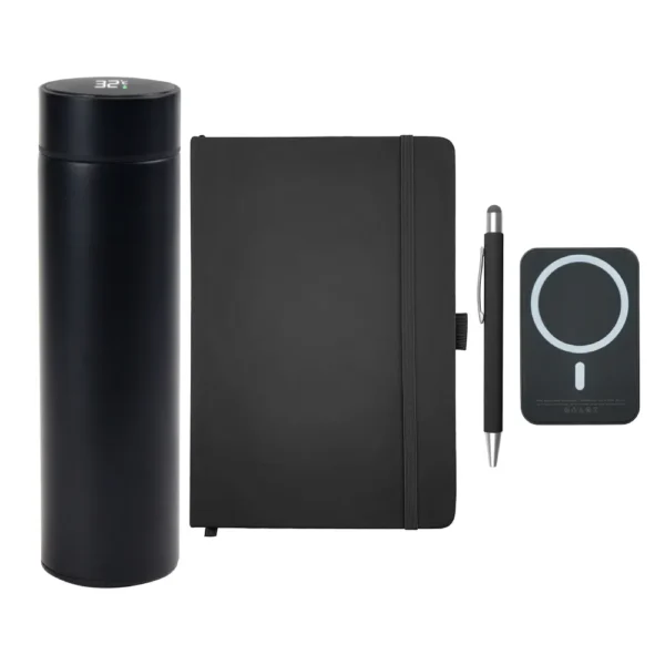 Products Combination: 1. Notebook: (SKU: MBA5PU) 2. Pen: (SKU: PN42 Or PN44) 3. Bottle: (SKU: TM-043) 4. Powerbank: (SKU: WPB-MS) Packaging Box: Foldable Gift Box with Magnetic Closure & Ribbon Handle (SKU: GB-B4)