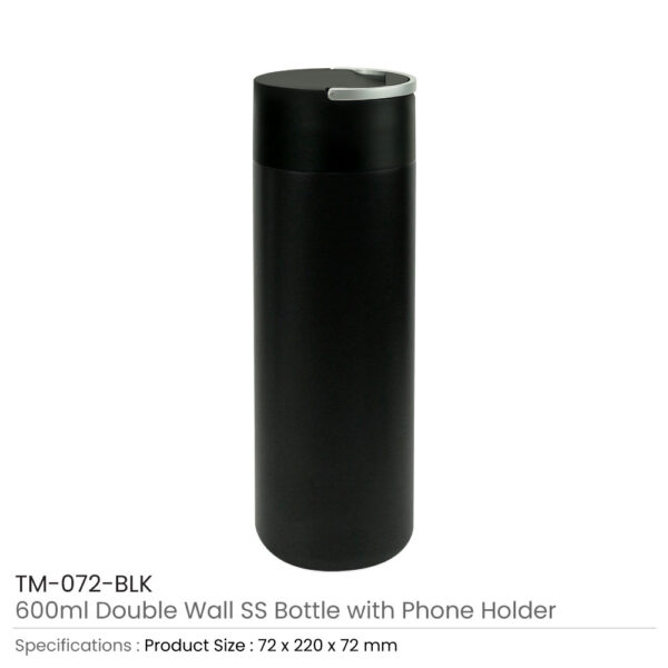 Double Wall SS Bottle, Twist-off Lid with Phone Holder 600 ml