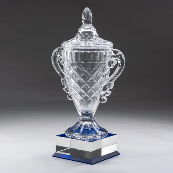 Celebrate achievements in style with this large, clear crystal glass trophy cup, designed to make a lasting impression. Crafted from premium crystal glass, this elegant trophy sits atop a solid glass base, making it perfect for recognizing excellence at corporate events, sports competitions, or award ceremonies.