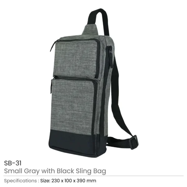 Sling Crossbody Bags in Grey and Black Polyester Material