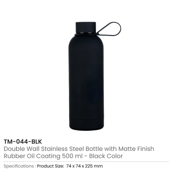 Stainless Steel Water Bottles 500ml – Double Wall, Matte Finish, Soft-Touch Rubber Coating
