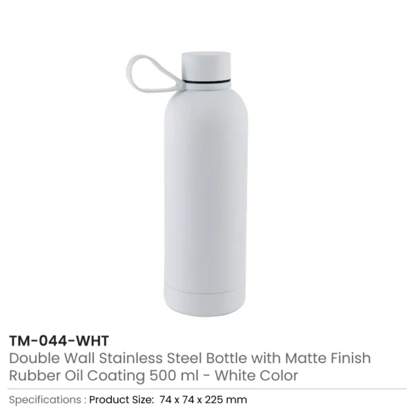 Stay hydrated in style with our premium Stainless Steel Water Bottles, featuring a soft-touch rubberized coating and a matte finish for a comfortable grip and a modern look. Designed with a double-wall vacuum structure, it maintains temperature effectively — keeping drinks cold for up to 24 hours and hot for up to 12 hours. The leakproof twist cap and detachable silicone handle make it convenient and portable for daily use. Available in four stylish colors — black, blue, white, and green — this BPA-free 500ml bottle is the perfect eco-friendly choice for corporate gifting, promotions, and personal use.