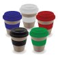 Travel Tumbler with bamboo and Black Matte Double Wall SS, Mat. design and Transparent Plastic Lid.