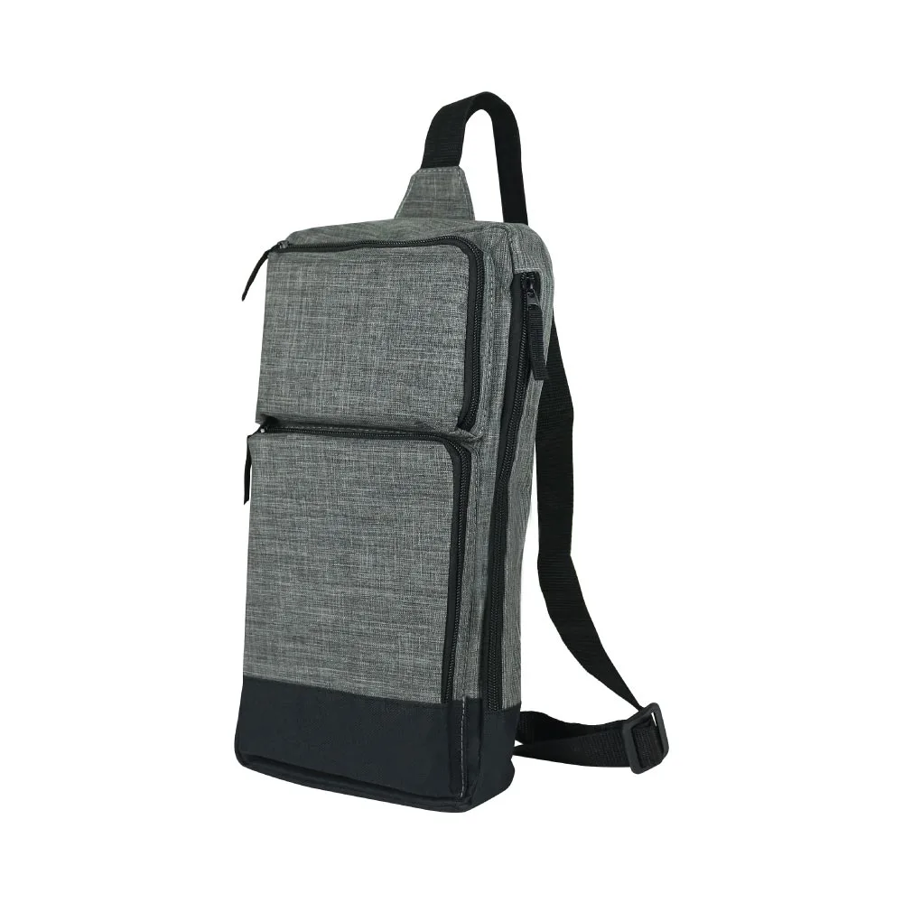 Triangular Sling Crossbody Bags are lightweight and spacious with a headphone hole for easy listening. Features a double zip main compartment, two front zipper pockets, and a back zipper pocket for secure storage. The breathable padded mesh shoulder strap and reversible hooks provide added comfort and versatility.
